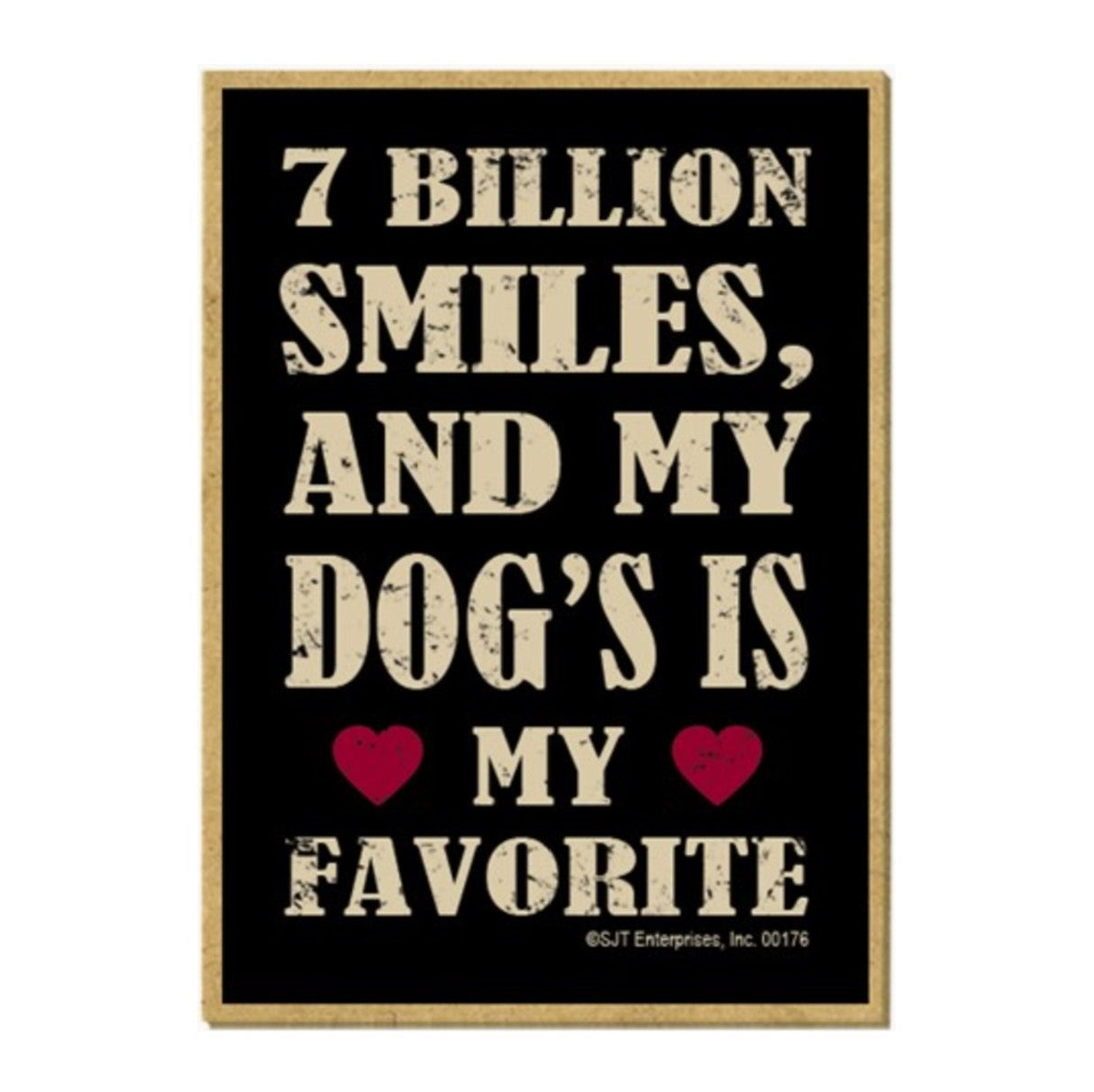 7 Billion Smiles And My Dogs Favorite Wood Fridge Magnet - measure 2.5" X 3.5" X 1/8" thick.