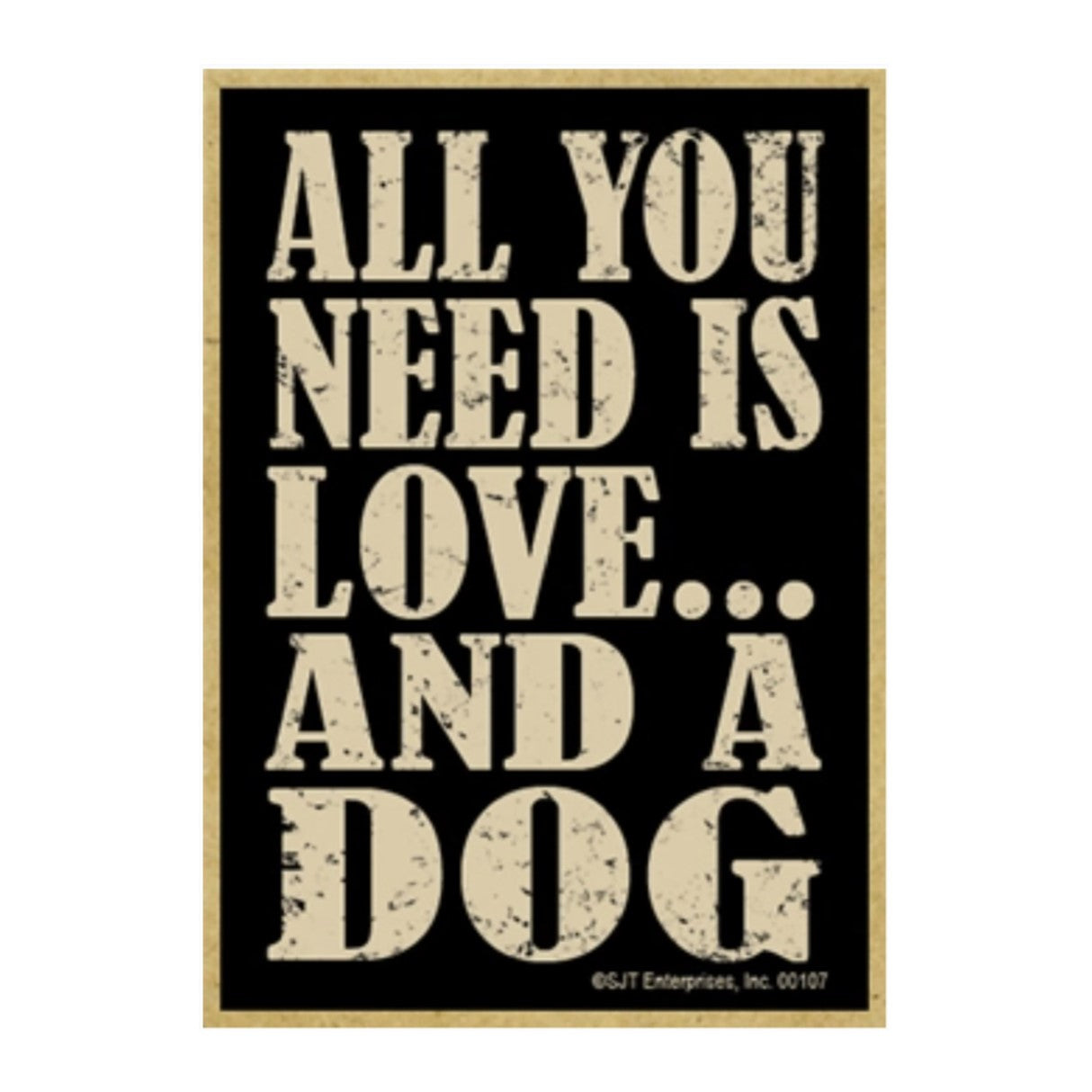 All you need is love and a dog wood fridge magnets - measures 2.5" X 3.5" X 1/8" thick.