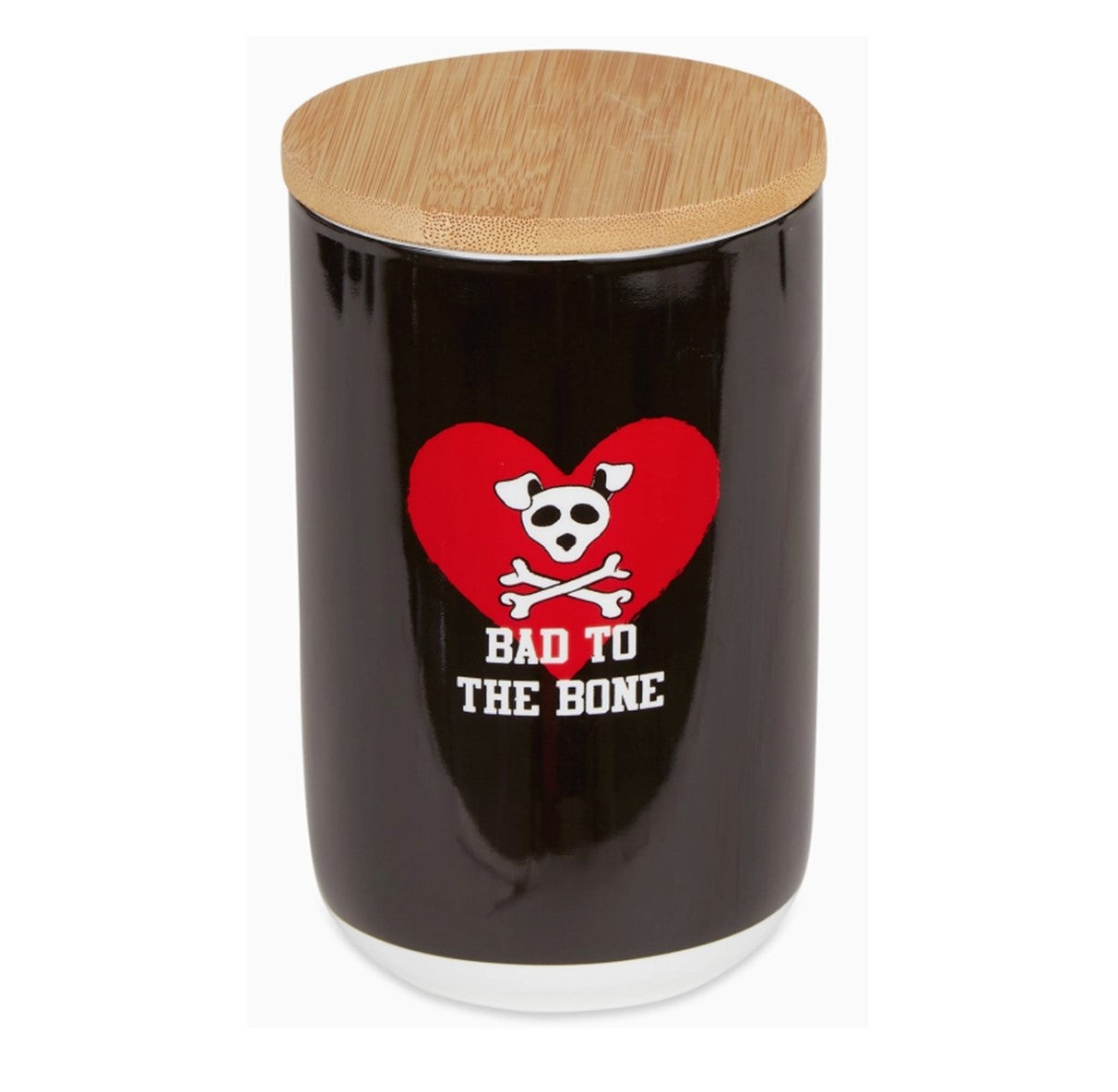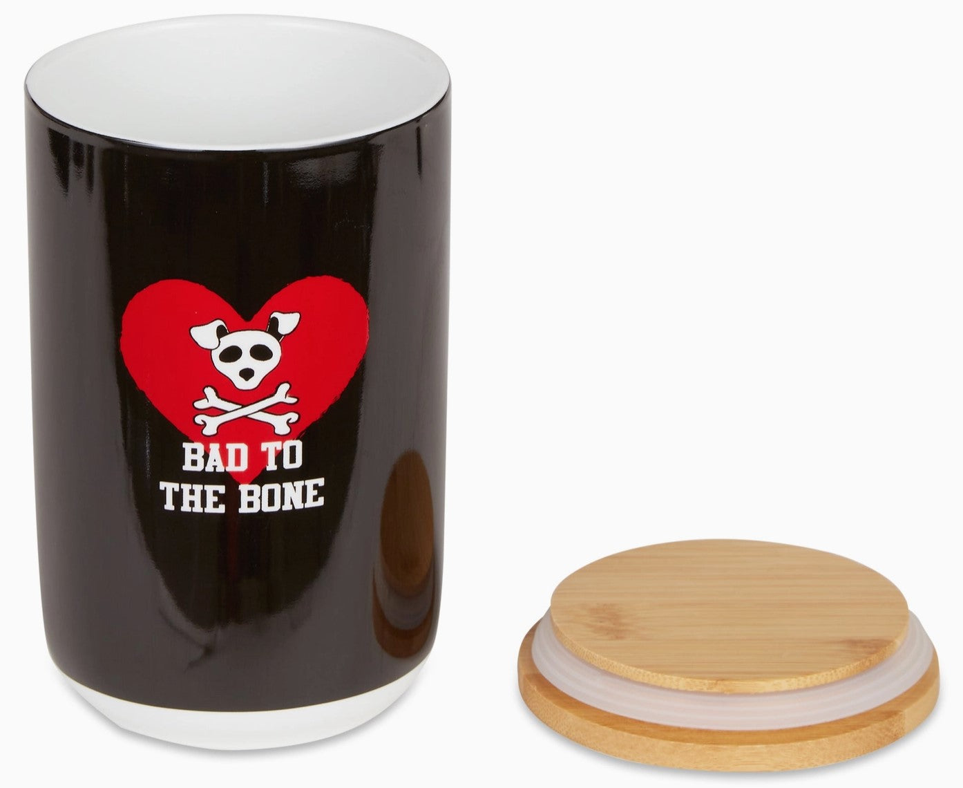 Treat canister measures 4 inches in diameter by 6.5 inches in height, perfect for storing pet food, treats for dogs and cats or even your cookies, coffee, tea, cocoa, pasta, spice and herbs. Ceramic canister is dishwasher safe. Hand wash bamboo lid and silicone ring and towel dry before use. Bamboo lid allows the food to breath, yet silicone rim is airtight to keep out moisture, humidity and pests.