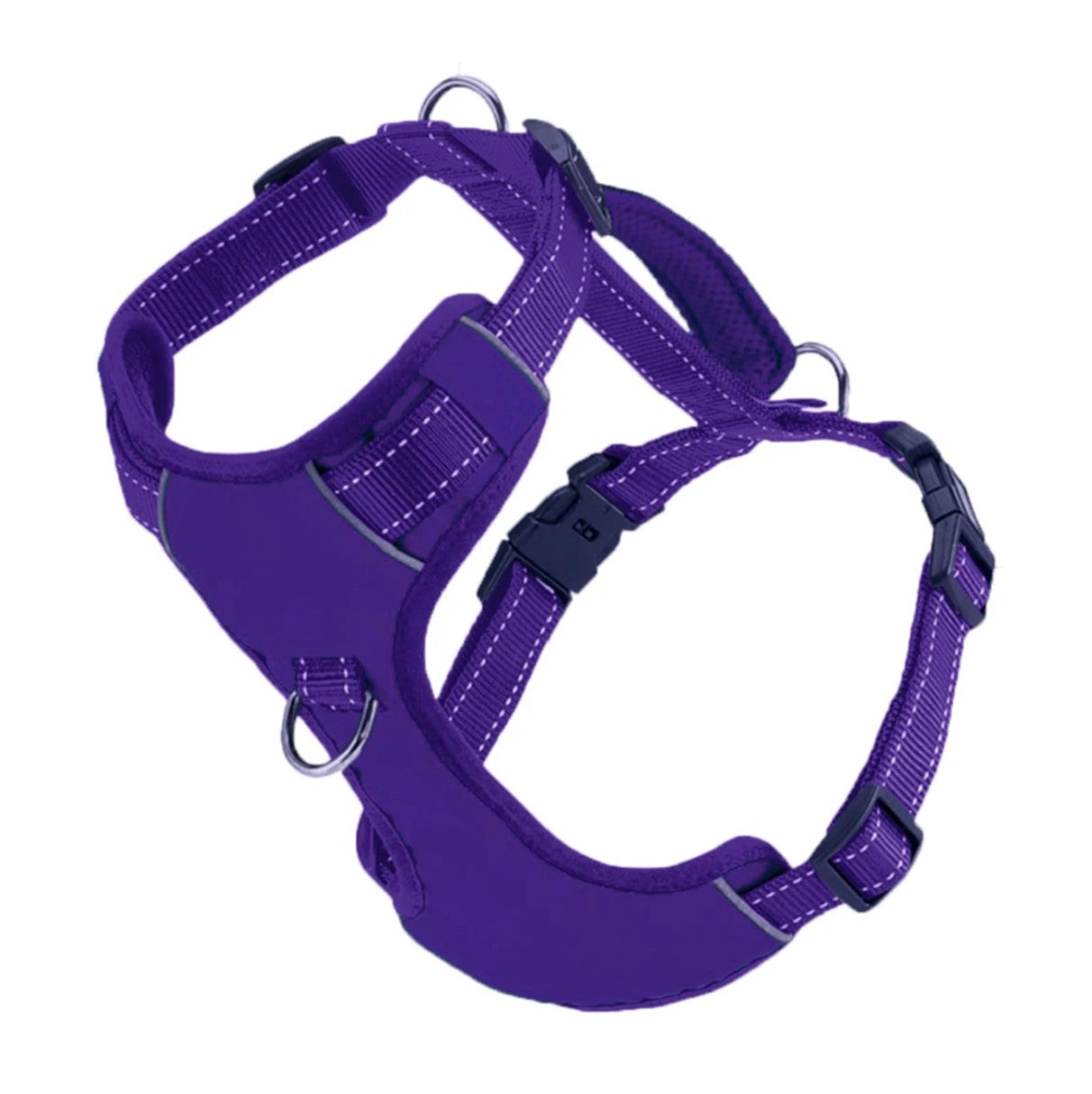 The Chesapeake Dog Harness is a premium Dog Harness For Comfort and Control. It features a padded traffic handle, cushioned breastplate, 3 leash attachment points, reflective stitching, and easy adjustability. This is the best dog harness to keep your dog walking happily by your side!