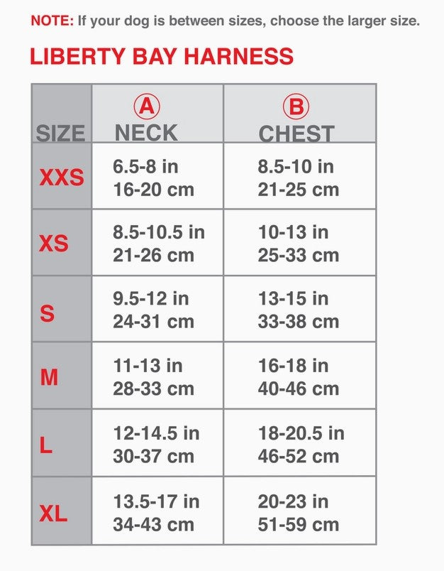 The Liberty Bay Dog Harness is a high-quality, lightweight, breathable, step-in dog harness loaded with features. NOTE: This harness is made for smaller breeds and the size chart does not correspond to other products.