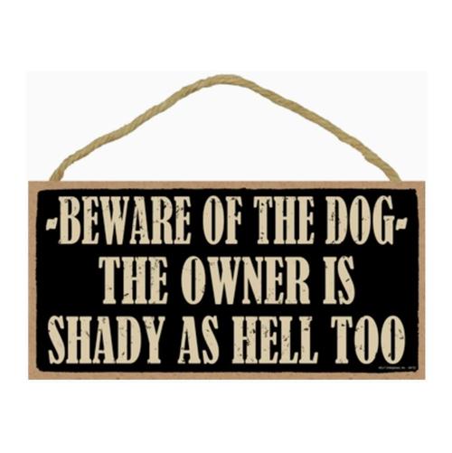 Beware of the dog -- the owner is shady as hell too 5" x 10" primitive wood sign.