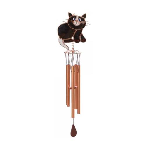This Black Cat Wind Chime measures 20 inches and is crafted of beautiful hand cut stained glass with lead soldering and electroplate. Give your home and garden the gift of style and charm with a gorgeous stained glass wind chime. These designs are built with high quality materials that will leave them looking new for years. Easy to clean. Weatherproof even in harsh weather. Colors will not fade, peel or scratch off.