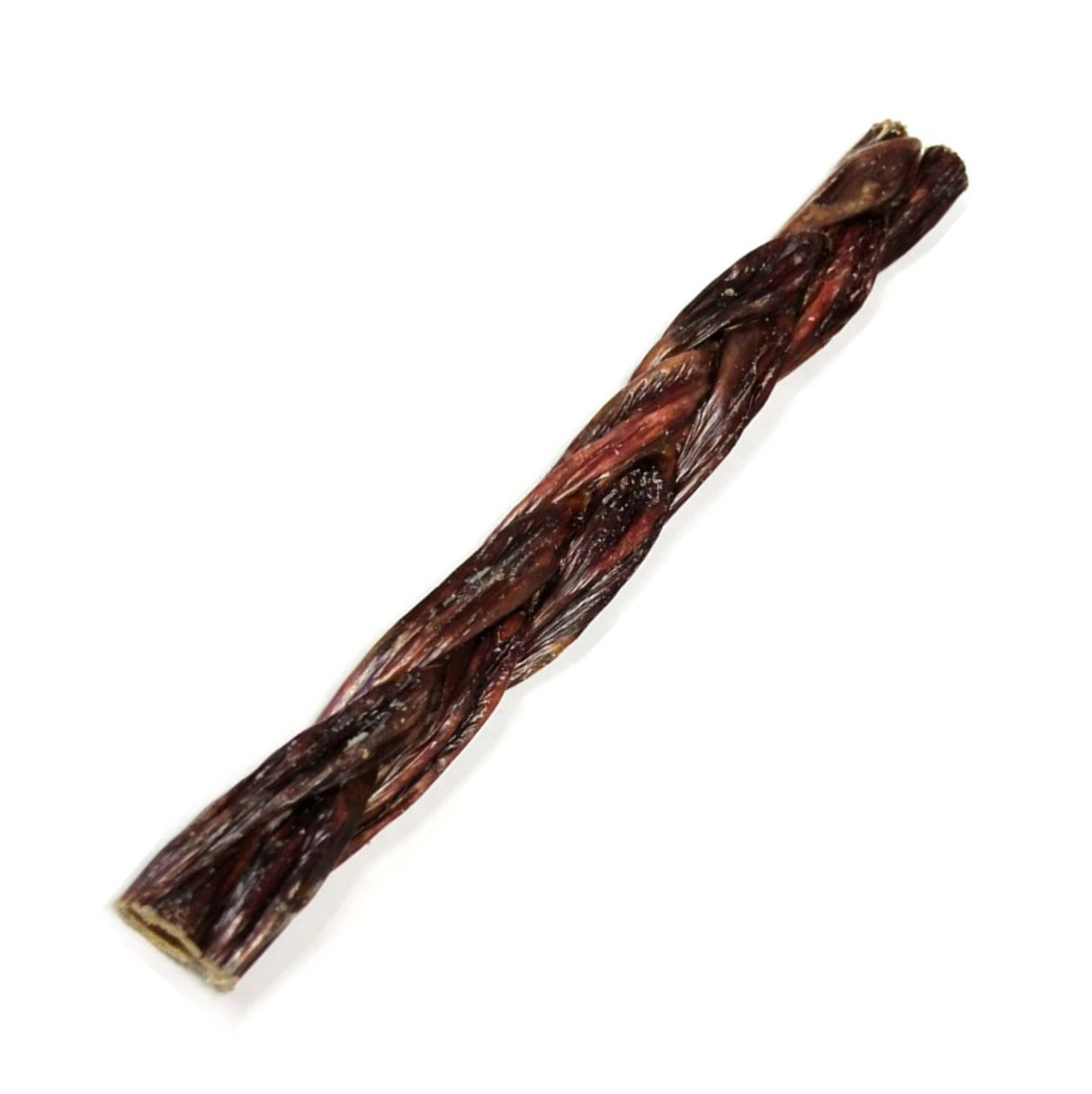 Description: Made of 3 strips of beef esophagus tightly braided together. Each piece is approximately 12" long and there is some variation in width and weight.