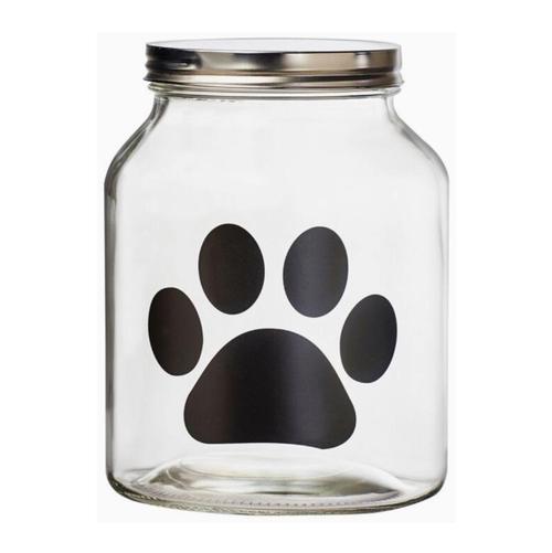 A 108-ounce Capacity allows this canister to safely house your pet's favorite food, treats, toys, and other essentials with ease. Measuring 6.5" x 6.5" x 8.5", this glass canister requires hand washing to maintain its beauty and functionality.