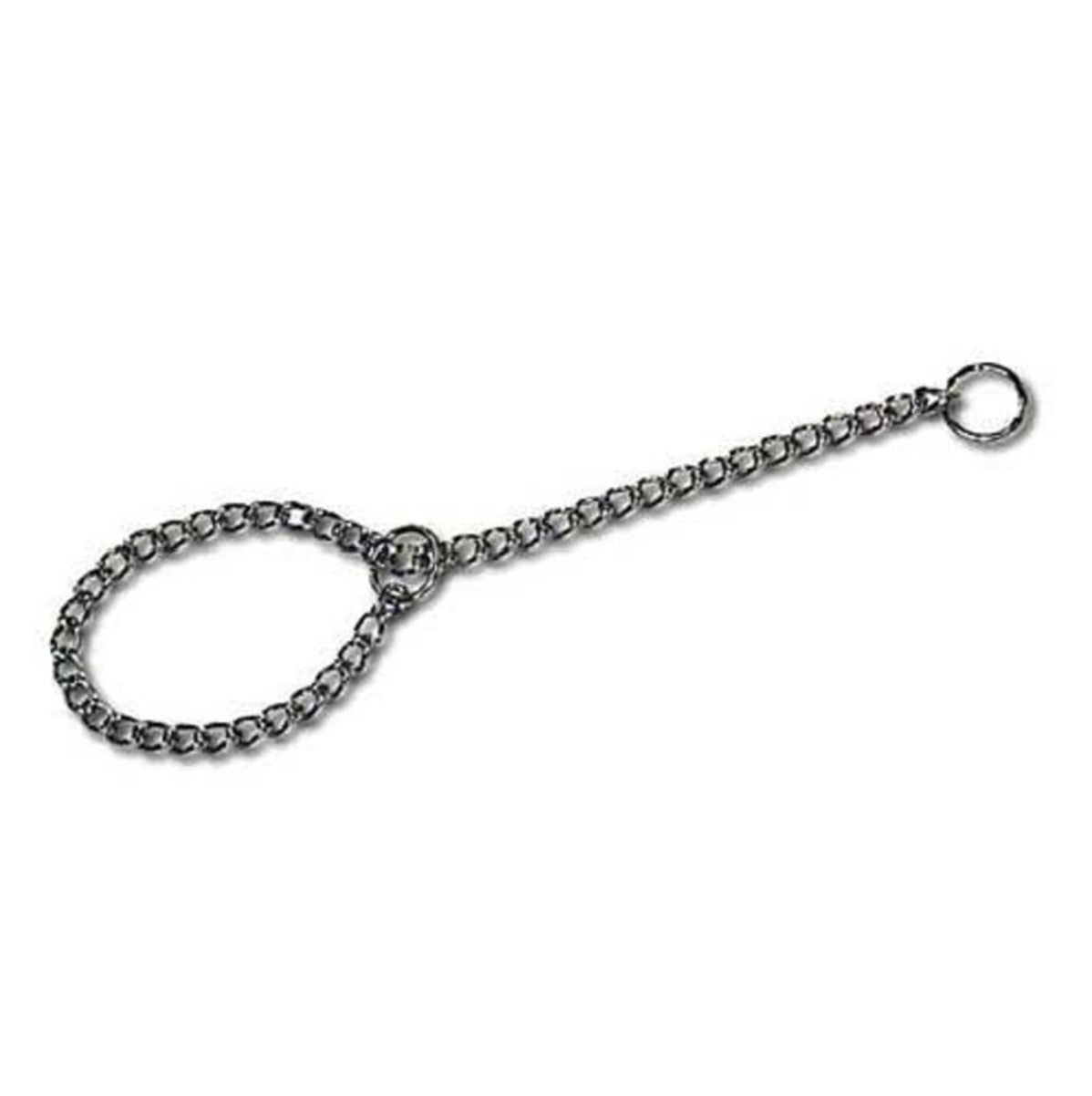 Chrome plated. Rugged and strong. For correct size, measure around the dog's neck and add 2 1/2—3 inches. To be used under the guidance of a professional trainer.