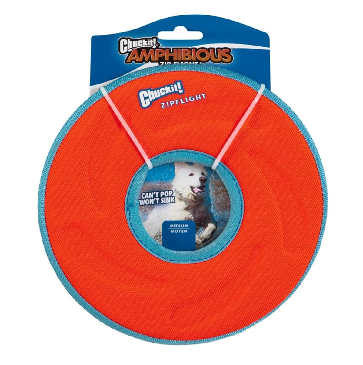 Crafted for high-flying action, this toy guarantees thrilling long-distance fun. Its buoyant design ensures playfulness on land and water, making it perfect for pool, beach, or lake play. Built tough from dense polyester canvas, the lightweight Zipflight features vibrant colors for enhanced visibility and an aerodynamic shape for exciting throws. Remember, it's not a chew toy—always supervise playtime. Experience the Chuckit! bond through interactive play. Our Performance toys cater to you and your canine companion, offering a variety of indoor and outdoor options. Strengthen connections with Chuckit! Fetch Pet Toys, designed to keep dogs engaged. From ball launchers to chew toys, create lasting memories of shared fun.