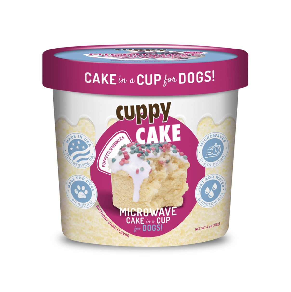 Cuppy Cake is the perfect microwave cake in a cup for dogs. Just add water, mix and microwave.