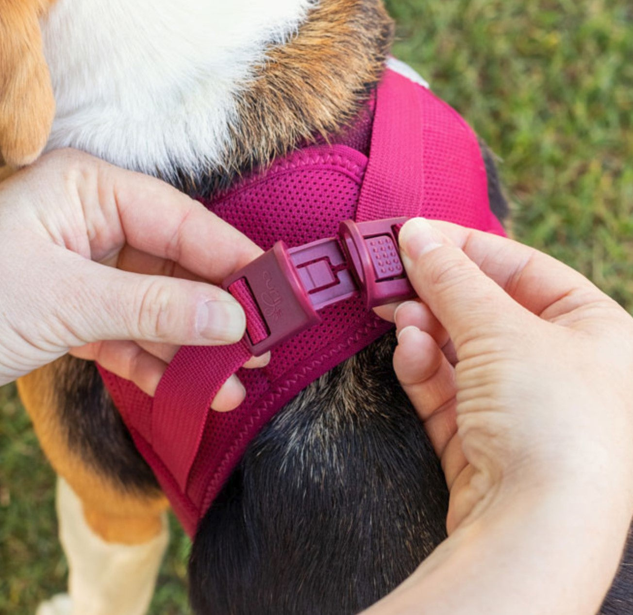 Step-In Vest Harness for small to medium dogs. The patented CLICK.SNAP.GO. curli Clasp closure makes leashing extra easy and stress free. At the same time it is the worlds safest, strongest and lightest harness closure.
