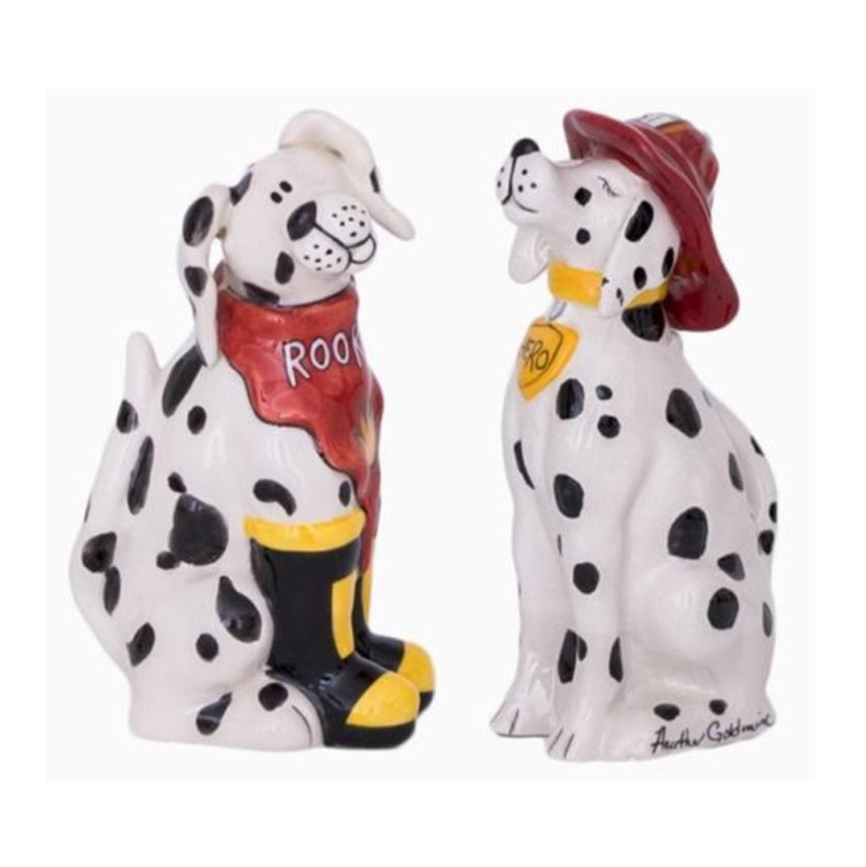 Introducing the Fireman Dog Salt & Pepper Set from Blue Sky Clayworks. This set is beautifully handcrafted, reflecting our brand's dedication to high design and unique craftsmanship. These ceramics, measuring 2.5'' x 2'' x 4'', add a playful touch to your kitchen. Enjoy the artistry and quality that Blue Sky Clayworks brings to your tabletop.