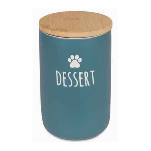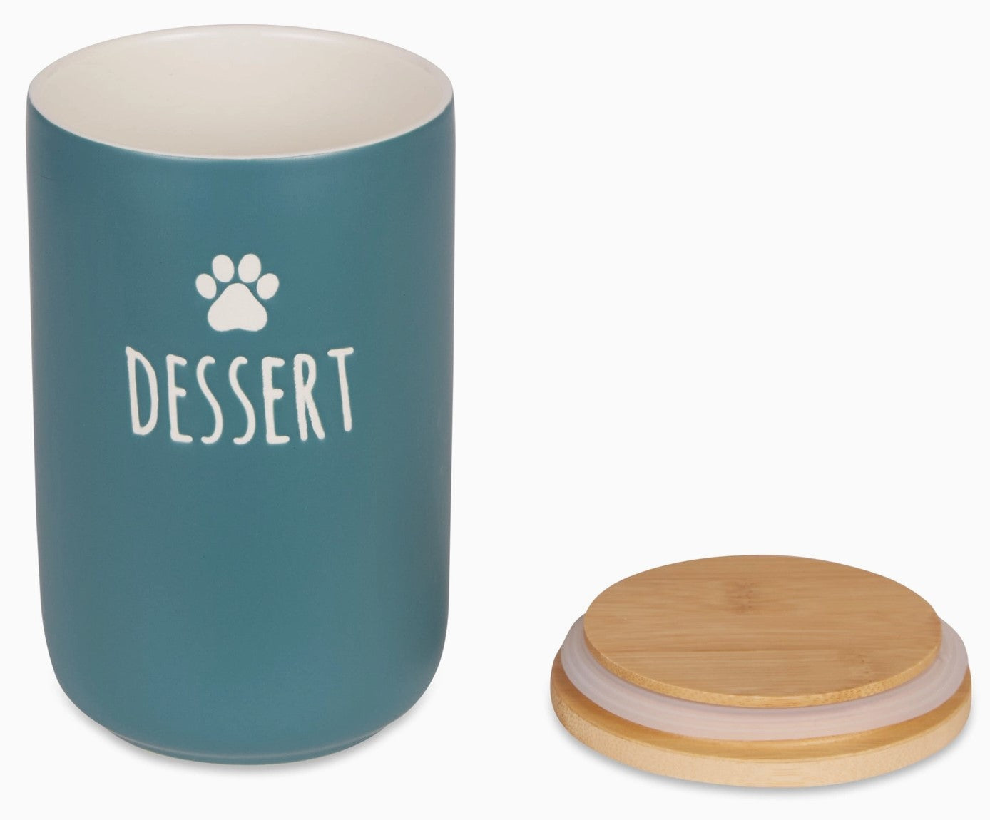 Treat canister measures 4 inches in diameter by 6.5 inches in height, perfect for storing pet food, treats for dogs and cats or even your cookies, coffee, tea, cocoa, pasta, spice and herbs. Ceramic canister is dishwasher safe. Hand wash bamboo lid and silicone ring and towel dry before use. Bamboo lid allows the food to breath, yet silicone rim is airtight to keep out moisture, humidity and pests.