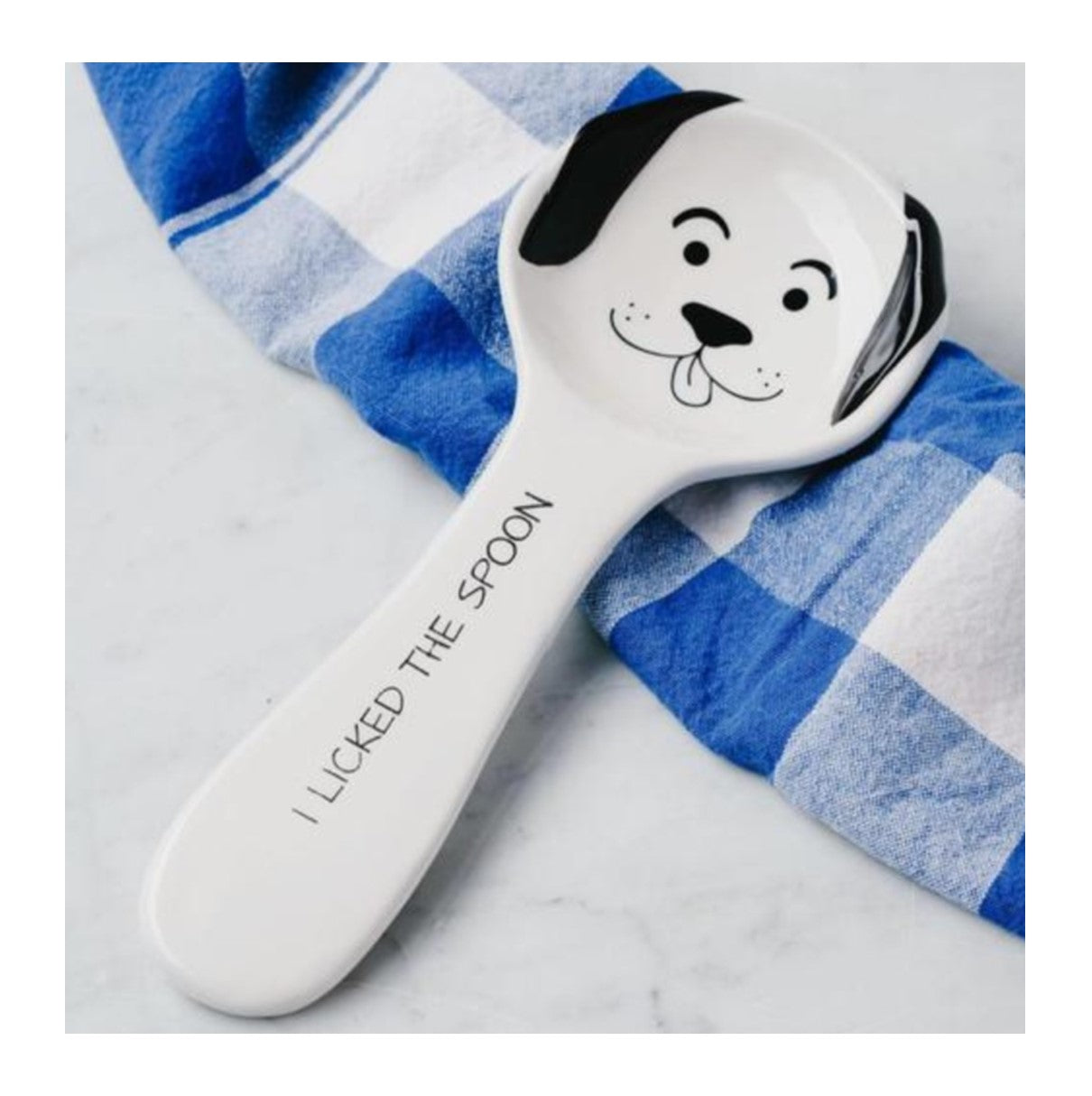 10-inch spoon rests are made from dolomite and molded into the shape of a dog. Features hand-painted faces and ears along with a text decal on the long part of the spoon rest. Comes packaged in a protective die-cut box. Great for gifting to a new dog mom or dog dad. Hand washing is recommended to preserve decals but is dishwasher safe.