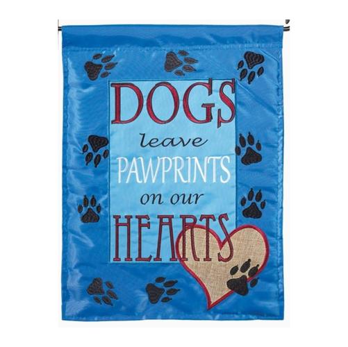 Dogs Leave Pawprints on Our Hearts Flag - Blue