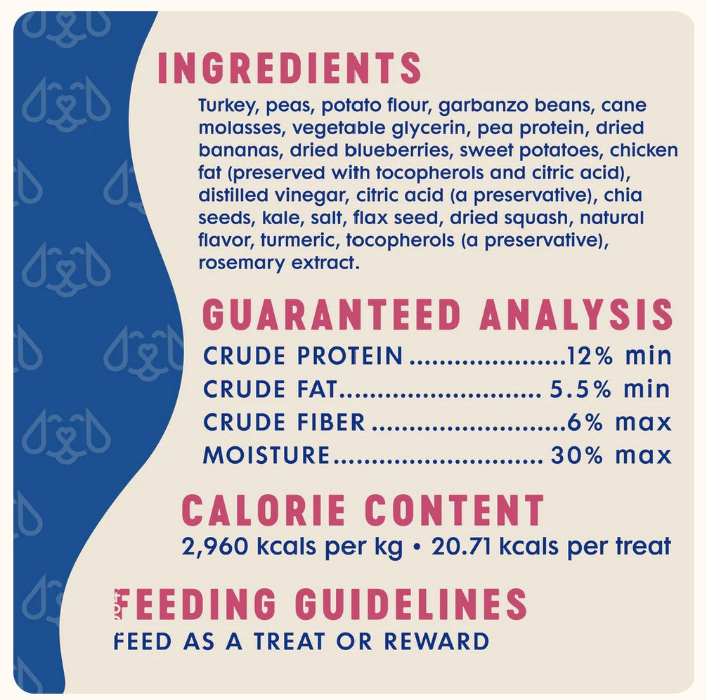 Treat your furry friend to a snack they’ll drool over with Finley's Turkey Griller Strips. Made with turkey as the #1 ingredient, these tender strips are perfect for dogs of all life stages. We’ve added a wholesome boost of superfoods like blueberries, banana, kale, and squash to make each bite as nutritious as it is delicious. Crafted with care using high-quality ingredients, our Griller Strips are free from wheat, corn, soy, and artificial additives, so you can feel great about snack time. And it’s not just your pup who benefits—with every bag sold, we support people with disabilities, making these treats a win for your pet and the community.