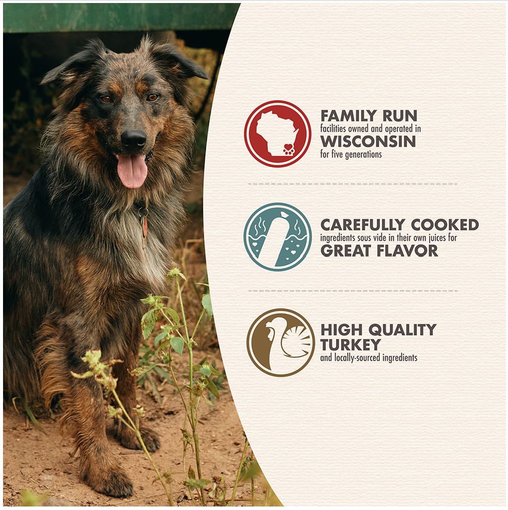 Turkey, Carrots, Potatoes, Peas, Turkey Liver, Pumpkin, Cranberries, Parsley, Fennel, Minerals [Dicalcium Phosphate, Zinc Sulfate, Magnesium Sulfate, Ferrous Sulfate, Zinc Proteinate, Calcium Carbonate, Copper Sulfate, Iron Proteinate, Sodium Selenite, Calcium Iodate, Manganese Sulfate, Copper Proteinate, Manganese Proteinate], Sunflower Oil (preserved with mixed tocopherols),Salmon Oil (preserved with mixed tocopherols) ,Salt, Potassium Chloride, Vitamins, Vitamins [Vitamin E Supplement, Niacin Supplement, Calcium Pantothenate, Riboflavin Supplement, Vitamin A Supplement, Biotin, Thiamine Mononitrate, Vitamin B12 Supplement, Pyridoxine Hydrochloride, Vitamin D3 Supplement, Folic Acid].