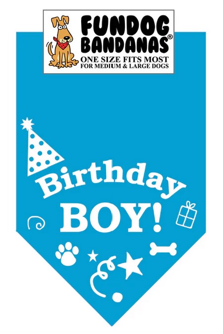 FunDog Birthday Boy Bandana - 2 Sizes, Several Colors