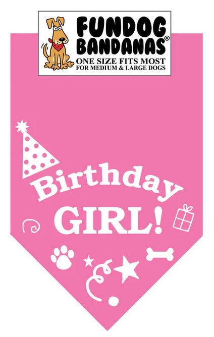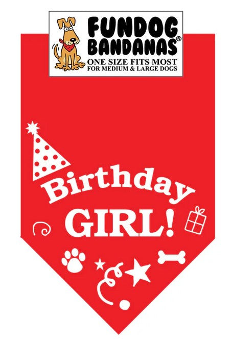 FunDog Birthday Girl Bandana - 2 Sizes, Several Colors