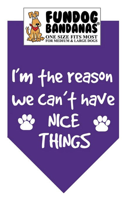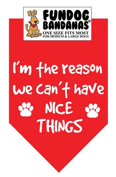 FunDog I'm The Reason We Can't Have Nice Things Bandana - 2 sizes, Several Colors
