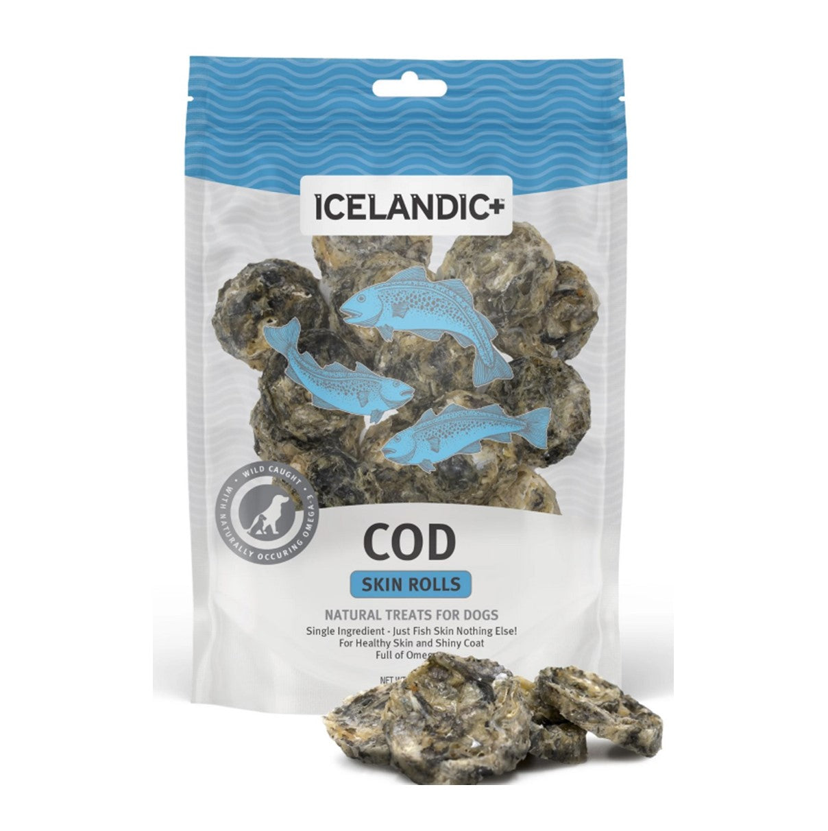 100% natural and edible Icelandic Cod Fish Skin Rolls are single ingredients and contain no additives, preservatives, or supplements.