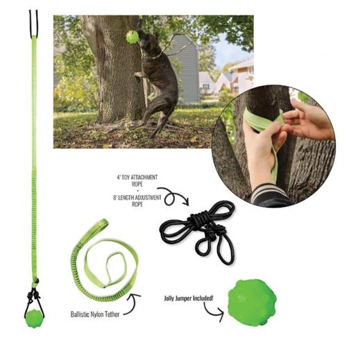 Meet your dog’s new best friend for solo play time! Toss this interactive bungee over a tree limb or second story deck and watch them jump, hurl, and tug the Jolly Pets Tree Tugger for hours! The Tree Tugger perfectly simulates a game of tug-o-war for any size dog by using the included Jolly Jumper toy or attaching your pup’s favorite toy. The Jolly Pets Tree Tugger is great for heavy chewers because you can adjust the height so your pup can’t sit and chew on the toy constantly.