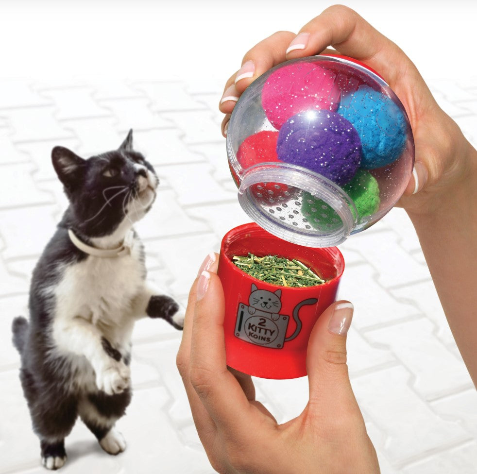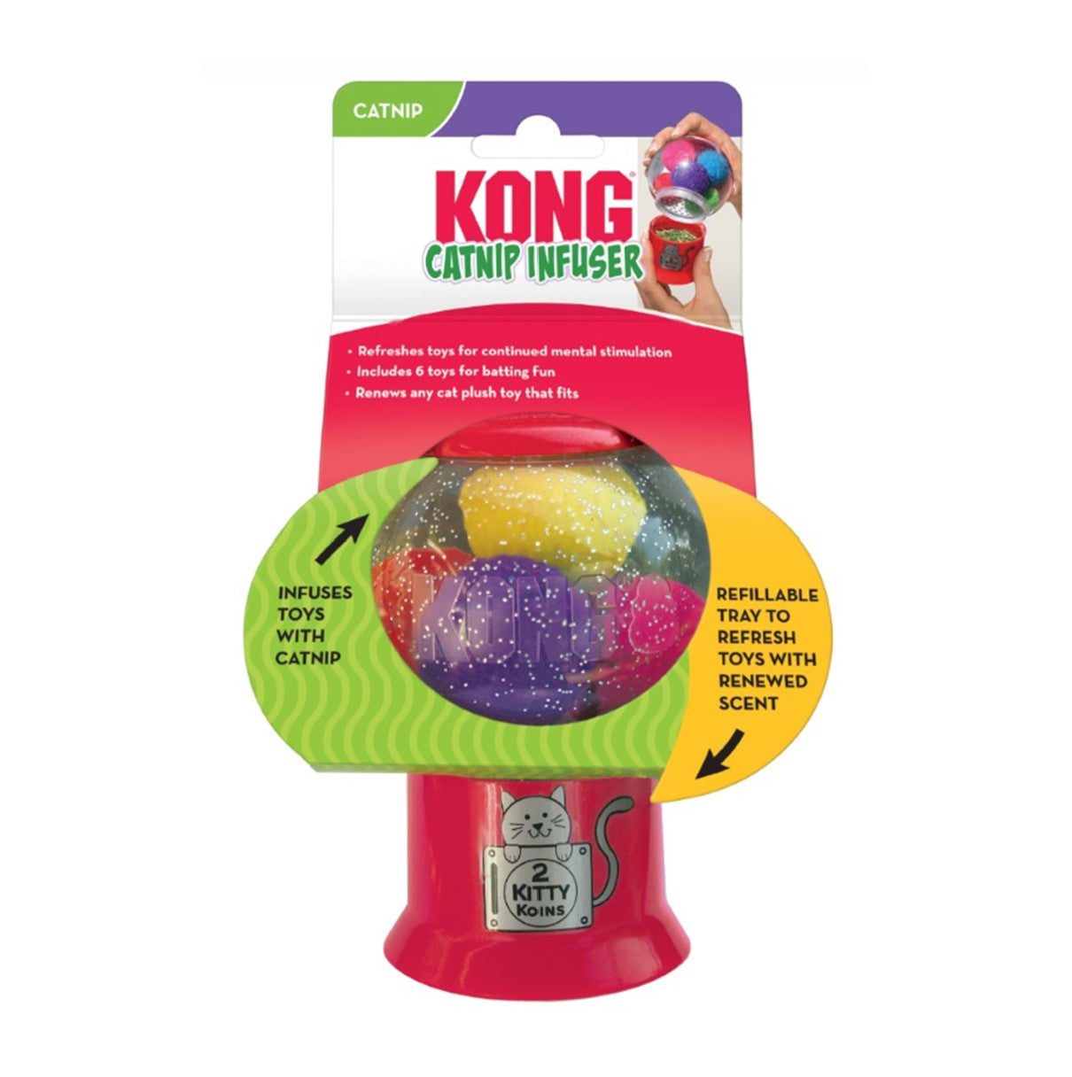 KONG Catnip Infuser refreshes toys infusing them in the irresistible scent of KONG North American Premium Catnip stored in the bottom tray. Screw off the bubble top and store the 6 pom-poms inside. Rotate with other toys that need to be refreshed with catnip, keeping cats engaged and playing longer. Includes KONG Premium North American Catnip. Add magic to toys—no penny needed!