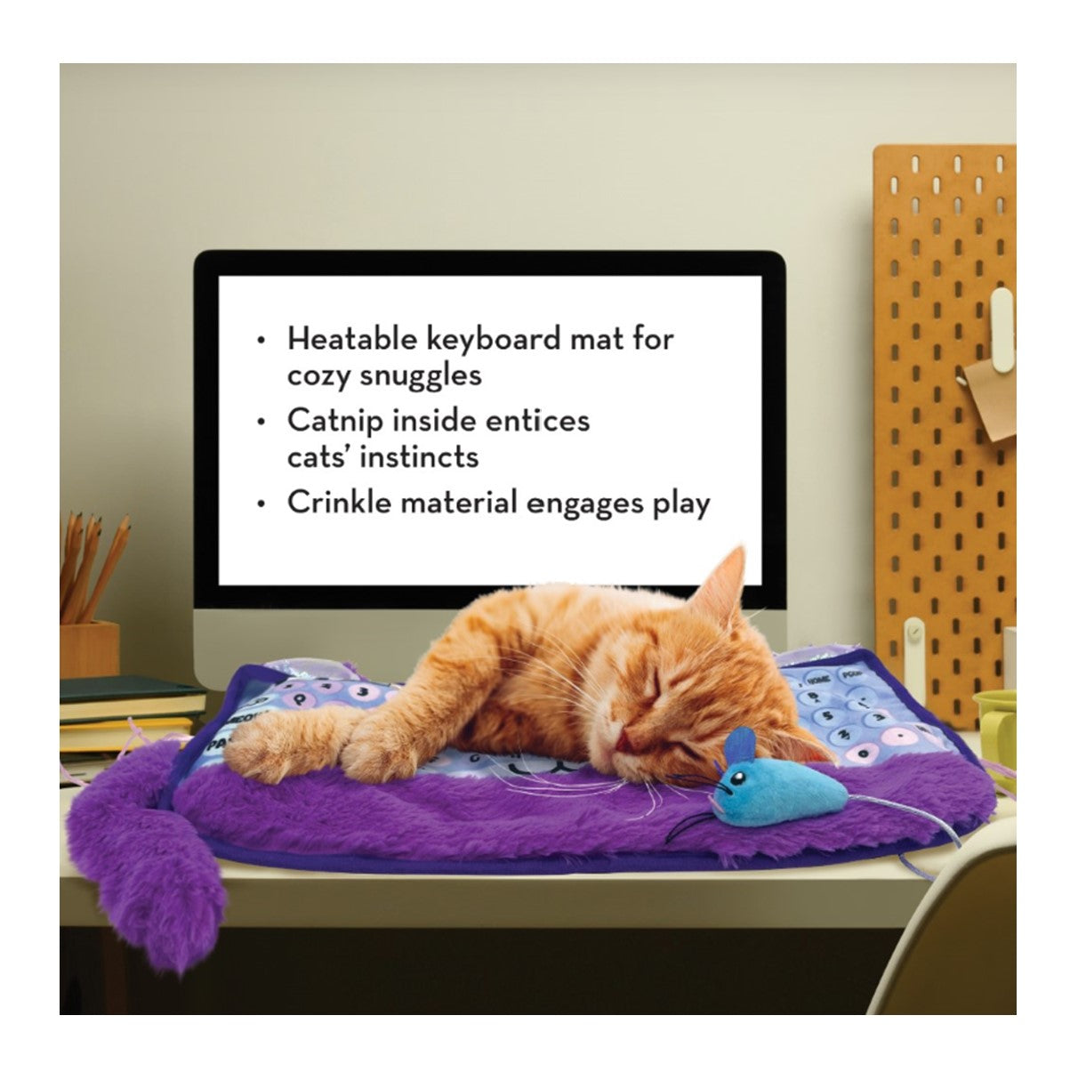 - Heatable keyboard mat for cozy snuggles