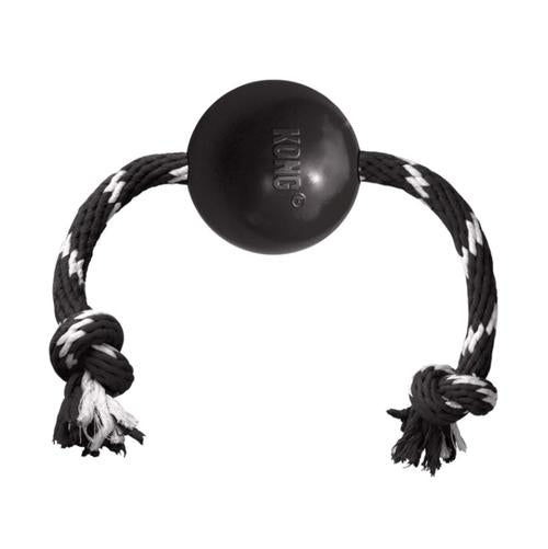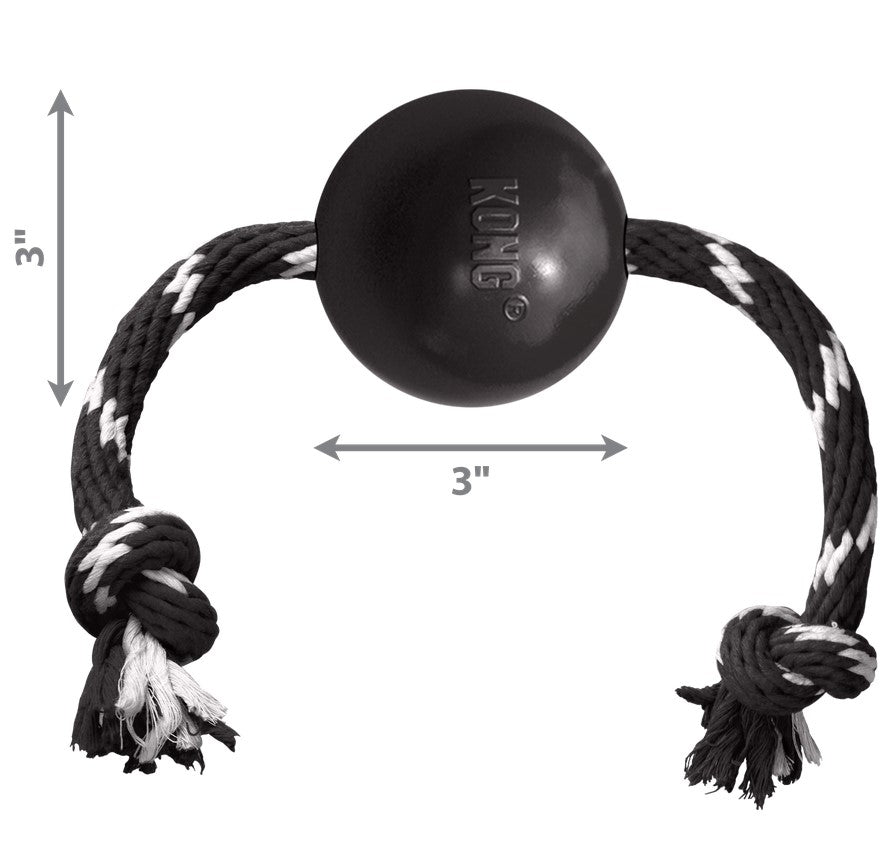 The Extreme KONG Ball with Rope adds long-lasting diversity to games of fetch and tug. Made from KONG Extreme rubber, the ball is designed for durability for long-lasting interactive play. The 100% cotton rope also rewards appropriate chewing behavior while massaging teeth and gum. All of this adds up to playful bouts of mentally stimulating and enriching engagement.