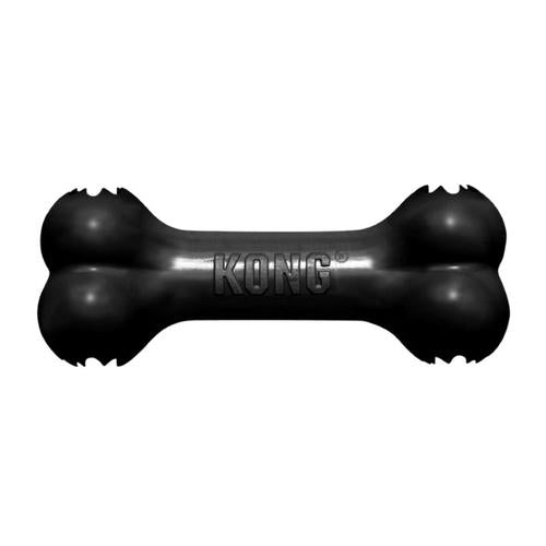 The KONG Extreme Goodie Bone™ toy delights dogs that are the toughest of chewers and that delight in chew sessions. Made from the most durable KONG Extreme unique, natural black rubber formula this bone is designed for determined chewers. The KONG Extreme Goodie Bone™ also features patented Goodie Grippers ™ that turn this entertaining toy into a fun treat dispensing challenge that can be stuffed with your dog’s favorite kibble. Want to extend the chew session? Stuff with KONG Snacks™ and entice with a bit of KONG Easy Treat™.