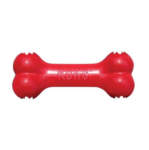 The KONG Goodie Bone™ toy engages dogs that delight in chew sessions. Made from the KONG Classic unique natural red rubber formula, this bone features the patented Goodie Grippers ™ that turn this entertaining toy into a fun treat dispensing challenge that can be stuffed with your dog’s favorite kibble. Want to extend the chew session? Stuff with KONG Snacks™ and entice with a bit of KONG Easy Treat™.