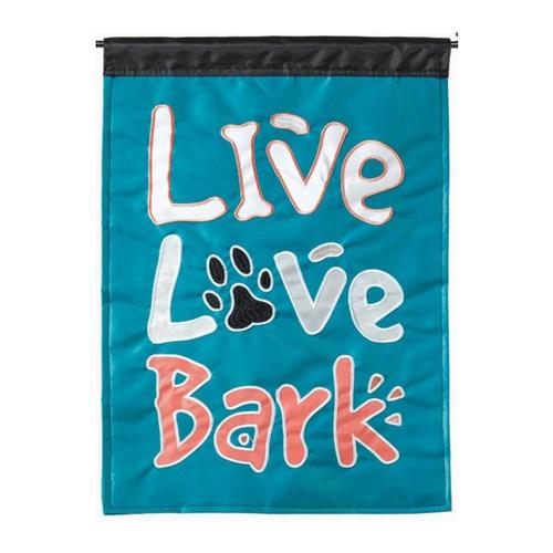 Double sided applique flags are double thickness, readable on both sides. They are heavier than most flags on the market and will hold up longer. They have detailed stitching and a combination of appliqued fabric and embroidery stitch. 13" x 18" H.