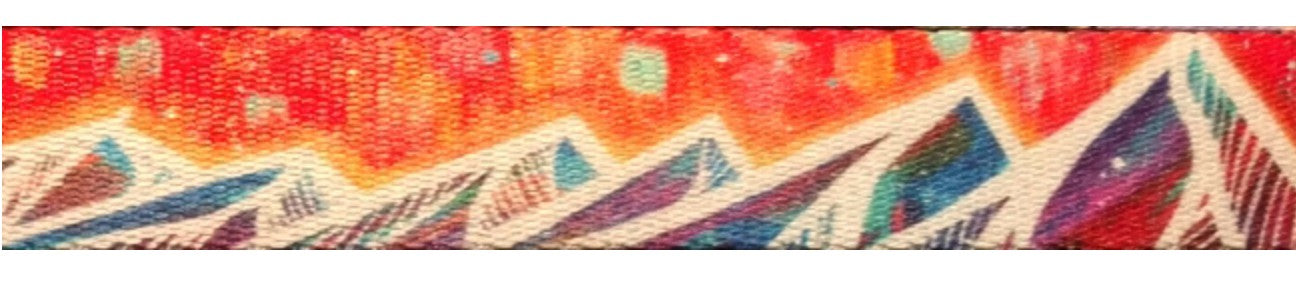We've collaborated with Big Sky artist Heather Rapp to bring some of her amazing artwork to life on our dog collars. This Spanish Peaks design was inspired by the eye catching mtn range SW of Bozeman.