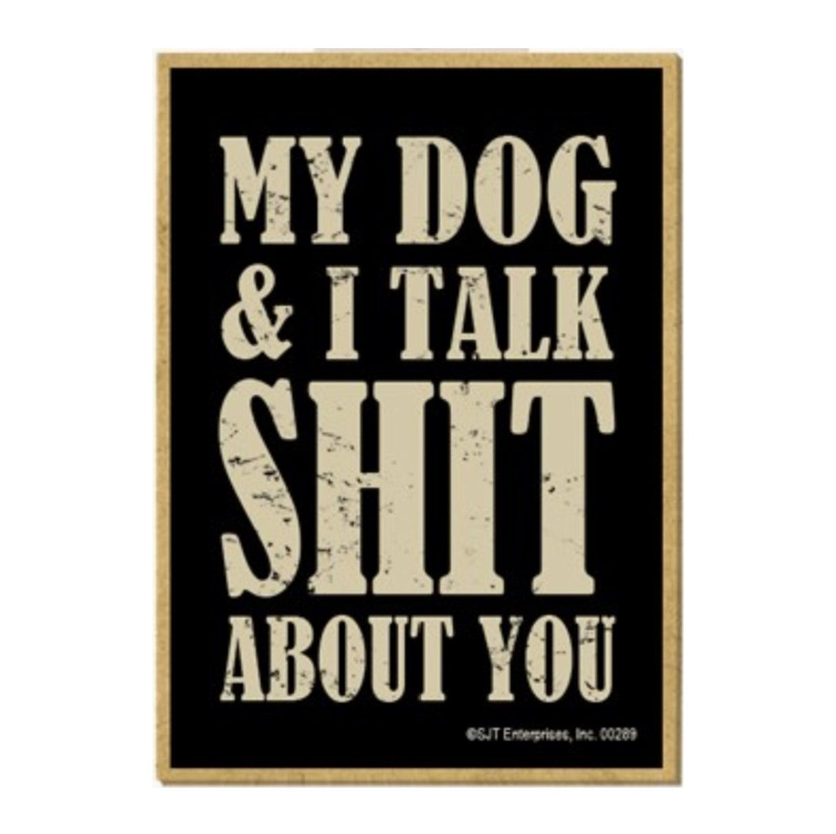 My dog and I talk shit about you wood fridge magnet 2.5" X 3.5" X 1/8" thick.