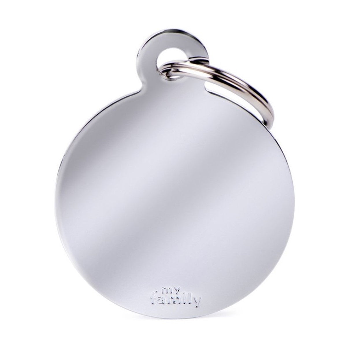The Basic Circle ID Tag in Chrome-Plated Brass embodies the essence of the MyFamily philosophy. In its extreme simplicity, it represents the quintessential ID tag. Precise in its lines, it can be personalized on both sides with an easily legible and durable engraving and is entirely made in Italy, in their manufacturing facility. Equipped with a practical ring to attach it to the tag-holder.