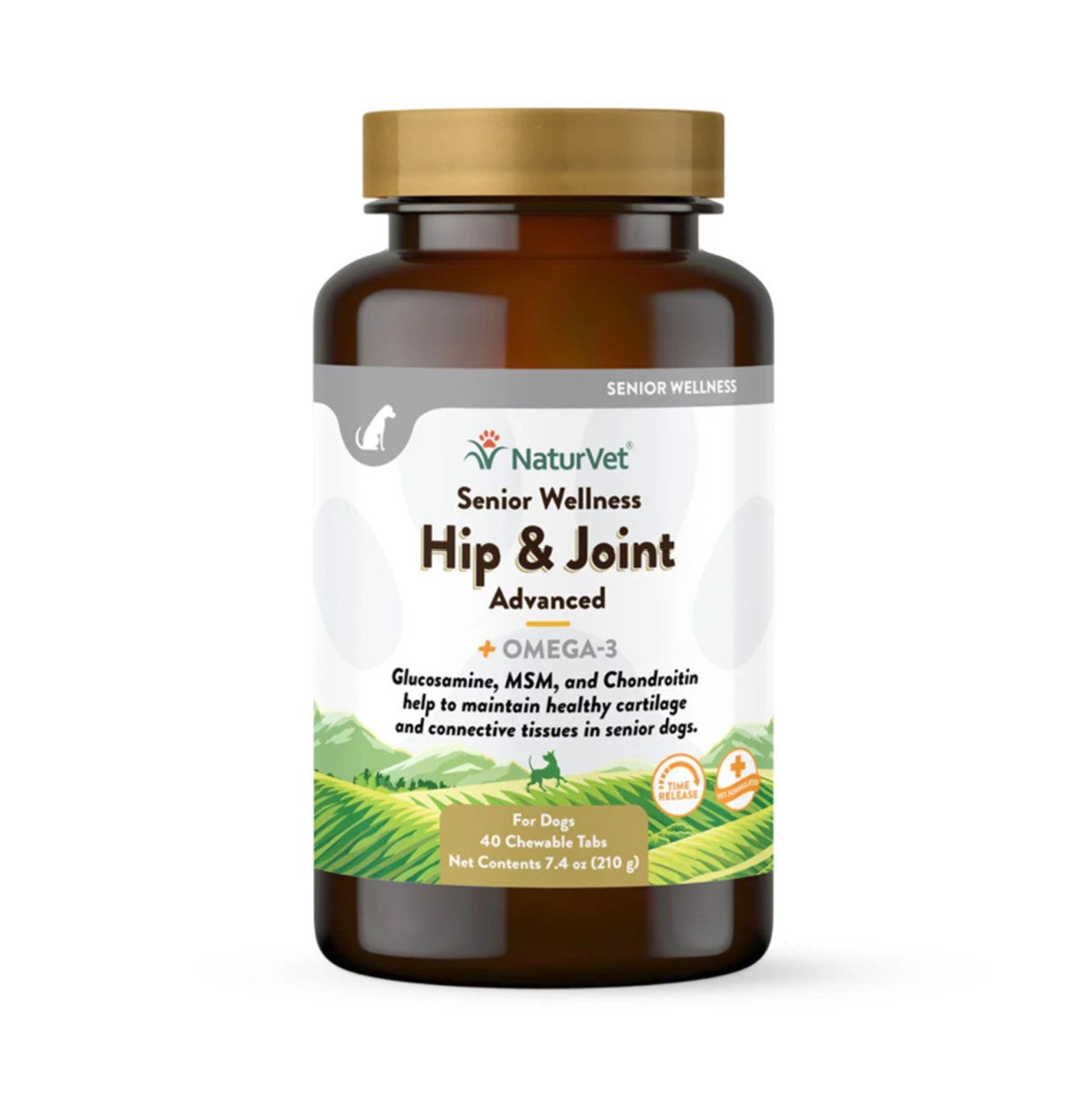 Senior Hip & Joint Advanced Chewable Tablets are for senior dogs that need extra support for healthy aging at advanced hip and joint stages. Glucosamine, MSM, and Chondroitin help support connective tissue, cartilage health, joint movement, and lubrication of joints. Also helps to alleviate aches and discomfort associated with daily exercise.