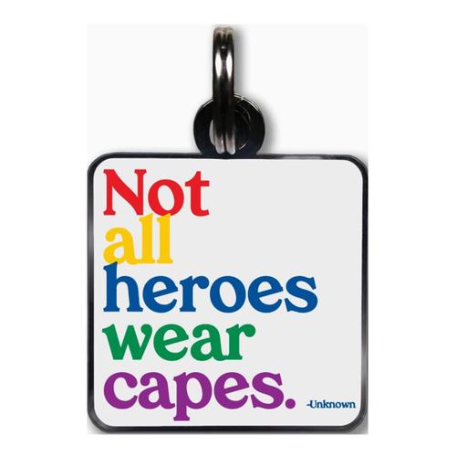 1 1/8" square with jump ring. Lightweight hard enamel with black nickel plating.