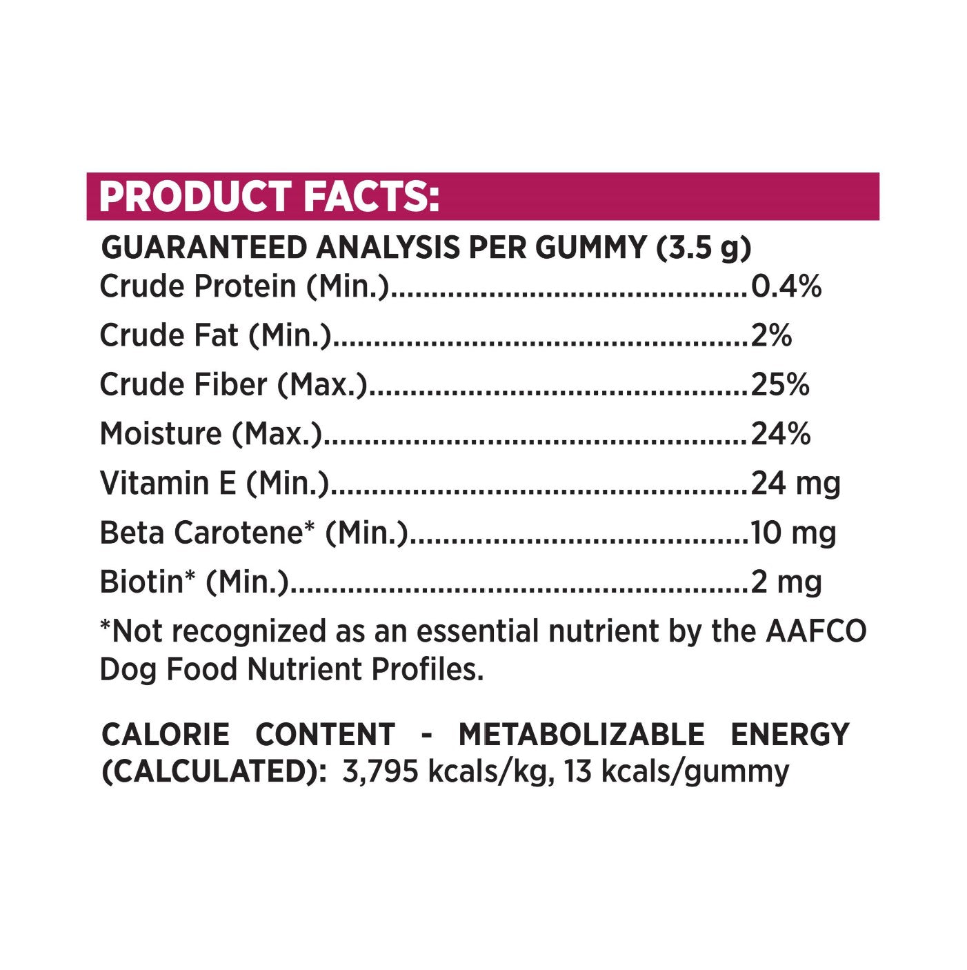 - Formulated with VITAMIN E, BETA CAROTENE & BIOTIN to help maintain a healthy immune system and provide daily support for skin, coat and nail health.