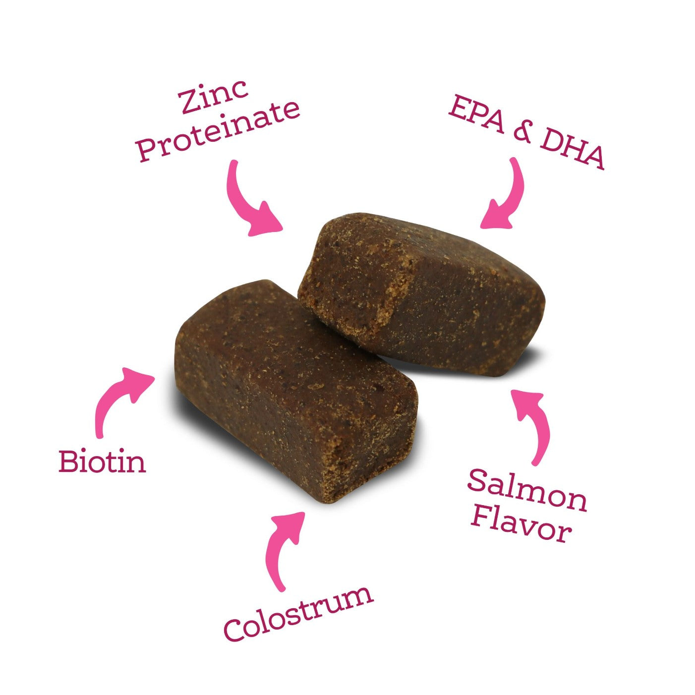 - Veterinarian formulated help promote and maintain a healthy coat and skin.