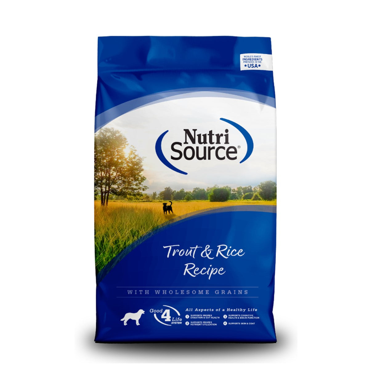 Trout, menhaden fish meal, brown rice, oatmeal, barley, chicken fat (preserved with tocopherols and citric acid), flax seed, natural flavors (chicken, turkey and fish), dried plain beet pulp, brewers dried yeast, dicalcium phosphate, potassium chloride, salt, minerals (zinc proteinate, iron proteinate, copper proteinate, manganese proteinate, selenium yeast), DL methionine, choline chloride, vitamins (vitamin A acetate, vitamin D3 supplement, vitamin E supplement, niacin, d-calcium pantothenate, thiamine mononitrate, pyridoxine hydrochloride, riboflavin supplement, folic acid, biotin, vitamin B12 supplement), lactic acid, L-ascorbyl-2-polyphosphate (source of vitamin C), yucca schidigera extract, taurine, L-carnitine, rosemary extract, yeast culture, dried Aspergillus oryzae fermentation extract, dried Bacillus subtilis fermentation product, dried Bacillus licheniformis fermentation product, dried Trichoderma longibrachiatum fermentation extract, dried Enterococcus faecium fermentation product, dried Lactobacillus acidophilus fermentation product, and dried Bacillus subtilis fermentation extract.