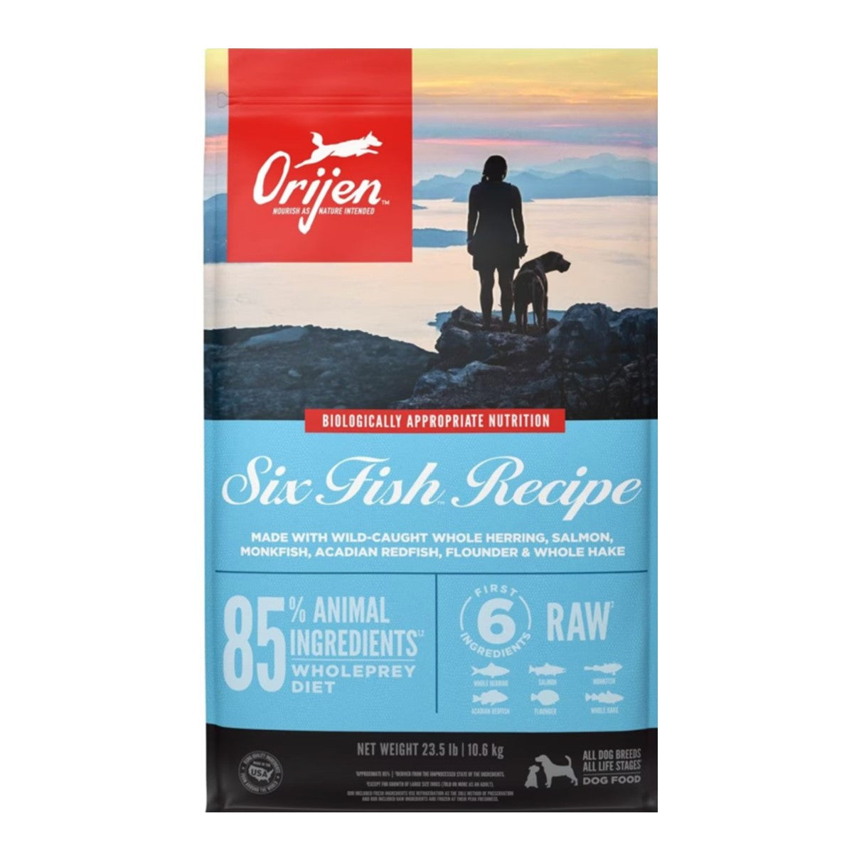 Whole herring, salmon, monkfish, Acadian redfish, flounder, whole hake, sardine meal, herring meal, blue whiting meal, pollock meal, whole red lentils, whole pinto beans, whole green lentils, dehydrated salmon, sunflower oil, whole navy beans, whole peas, natural fish flavor, dried apple pomace, herring oil, saower oil, vitamin E supplement, mixed tocopherols (preservative), whole pumpkin, whole butternut squash, collard greens, whole apples, whole pears, dried kelp, zinc proteinate, niacin, thiamine mononitrate, calcium pantothenate, pyridoxine hydrochloride, riboflavin, folic acid, vitamin B12 supplement, copper proteinate, dried Bacillus coagulans fermentation product, dried chicory root, turmeric, sarsaparilla root, althea root, rosehips, juniper berries, citric acid (preservative), rosemary extract.
