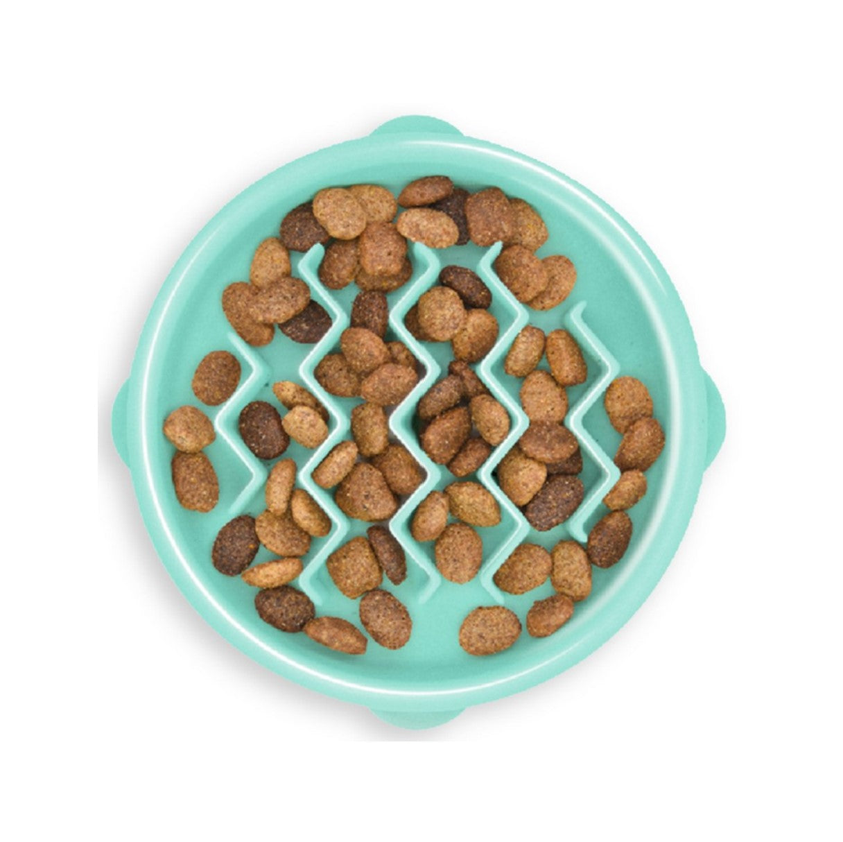 With meal-lengthening ridges, deep grooves, and challenging mazes, Outward Hound Fun Feeder Slo Bowls keep pups engaged for up to 10x longer at chow time. By creating a fun, healthy eating pace, these slow feeders help reduce obesity and bloat and improve your dog's digestion for happier, healthier pups; These slow feeders are non-slip to prevent sliding and spillage, top rack dishwasher safe, BPA, PVC, lead, and phthalate free, and will hold up to 3/4 cup. Go beyond the boring ol' dog bowl, and make mealtime more fun!