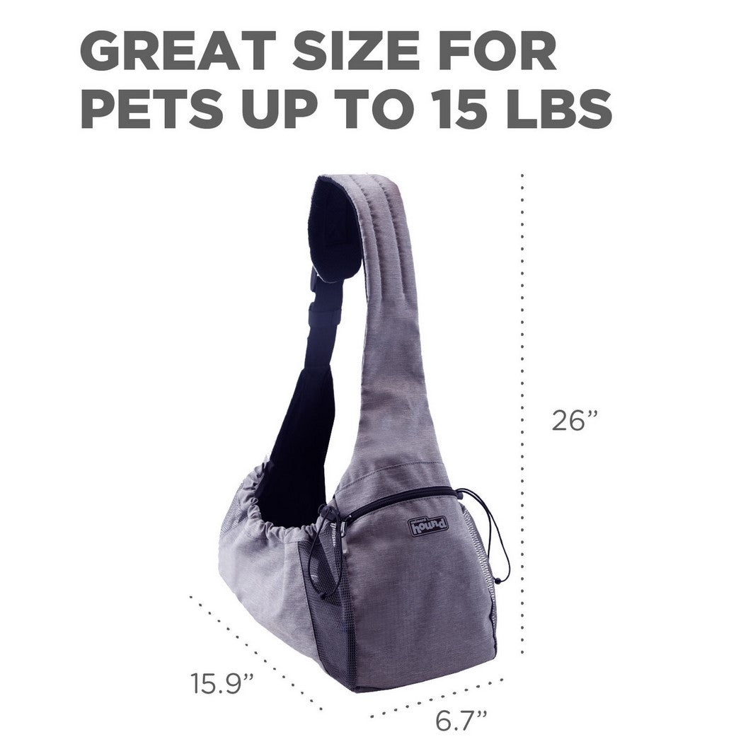 Accommodating pets weighing 15 lbs and under, you can now easily go the distance with your dog hands-free when they need assistance getting around. The dog sling features a front zippered pocket to store all of your on-the-go essentials, and mesh provides ventilation to keep your pooch cool and comfortable throughout the journey. The strap is padded and can be adjusted to your comfort level, and side drawstrings can be tightened or loosened to accommodate pets of different size. The padded base inside the sling can be removed for easy cleaning.