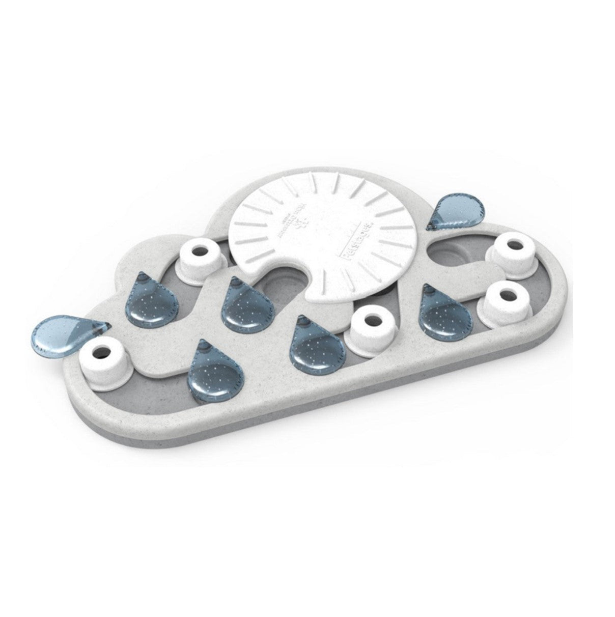 Your smarty cats will love the challenge of the Rainy Day Puzzle & Play by Nina Ottosson. Cats bat at the pegs and swivel the rain drops to uncover the 14 hidden treat compartments. Adjust the difficulty of the puzzle to make it easier for beginners or more challenging for super smarty cats. Each puzzle comes with a Tips and Tricks info sheet to help you get the most out of your puzzle. Replace your standard bowl and feed your cat from the puzzle to engage their natural hunting and foraging instincts. The puzzle holds up to 1/4th cup of food, and is made with food safe materials that you can trust with your kitty.