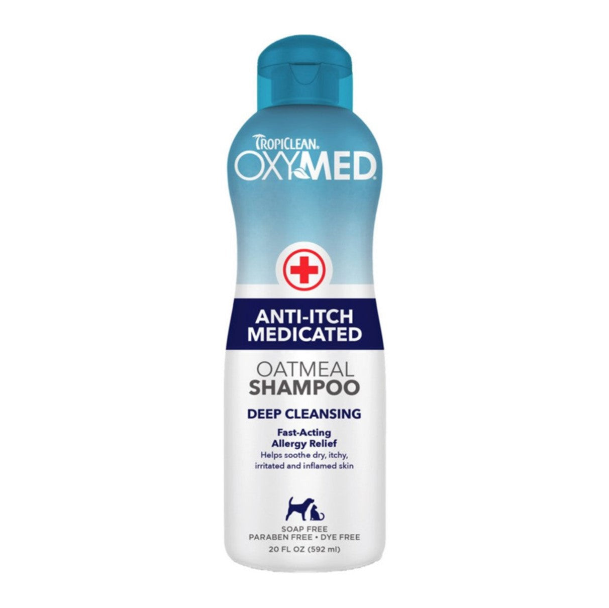 OxyMed Anti-Itch Medicated Oatmeal Shampoo contains a gentle yet powerful combination of alpha hydroxy, beta hydroxy, and tea tree oil that exfoliates the skin’s surface and penetrates deep into the pores to cleanse and help soothe dry, itchy, irritated, and inflamed skin. This refreshing, deep-cleansing dog shampoo for itchy skin is enhanced to effectively moisturize and condition the skin and coat while providing soothing relief from itching.
