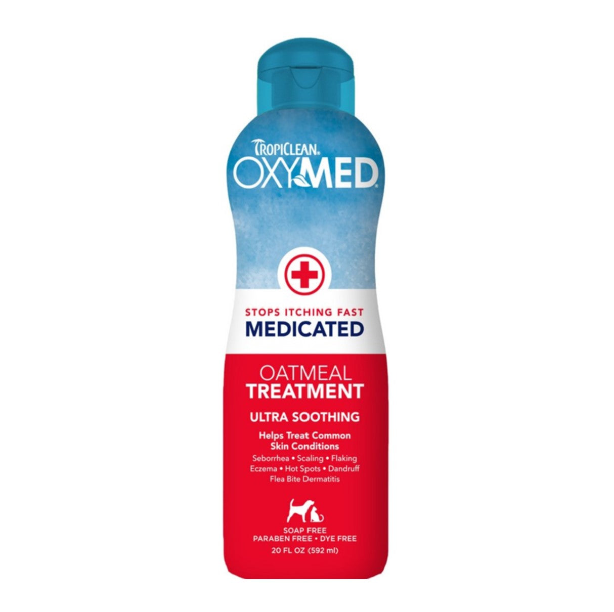 OxyMed Medicated Oatmeal Treatment contains a powerful combination of alpha hydroxy, beta hydroxy, and omega-3 & -6 fatty acids that helps penetrate deep into the pores, exfoliating the skin to help restore moisture. The nourishing oatmeal conditioner contains vitamins, chamomile, and aloe to condition the skin and coat and provide ultra-soothing relief.