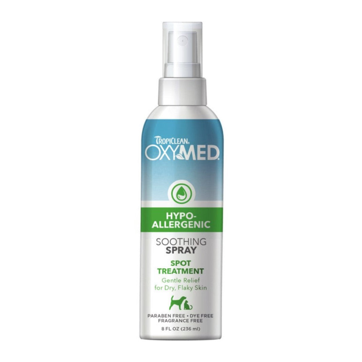OxyMed Hypoallergenic Soothing Spray is an immediate soothing solution for pets with sensitive skin. Specially formulated to help reduce swelling, redness, and dandruff, while providing nourishment and relief from itching. Gentle for use on puppies and kittens.