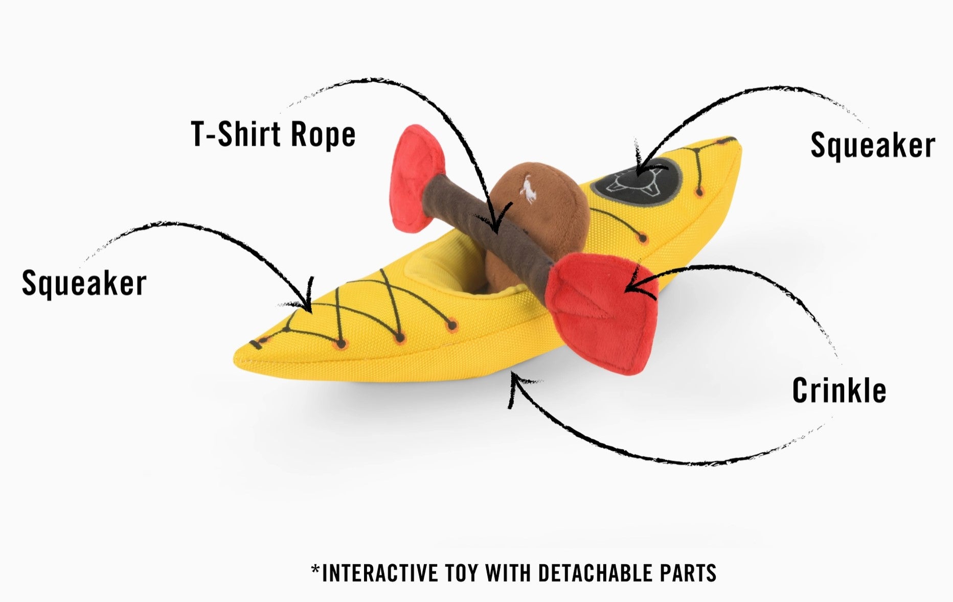 Paddle into a world of playtime with P.L.A.Y.’s Camp Corbin K9 Kayak toy! This whimsical watercraft replica features crinkles and squeakers, and for added fun, a detachable paddle comes equipped with a t-shirt rope. This interactive toy promises hours of fun for your furry adventurer!