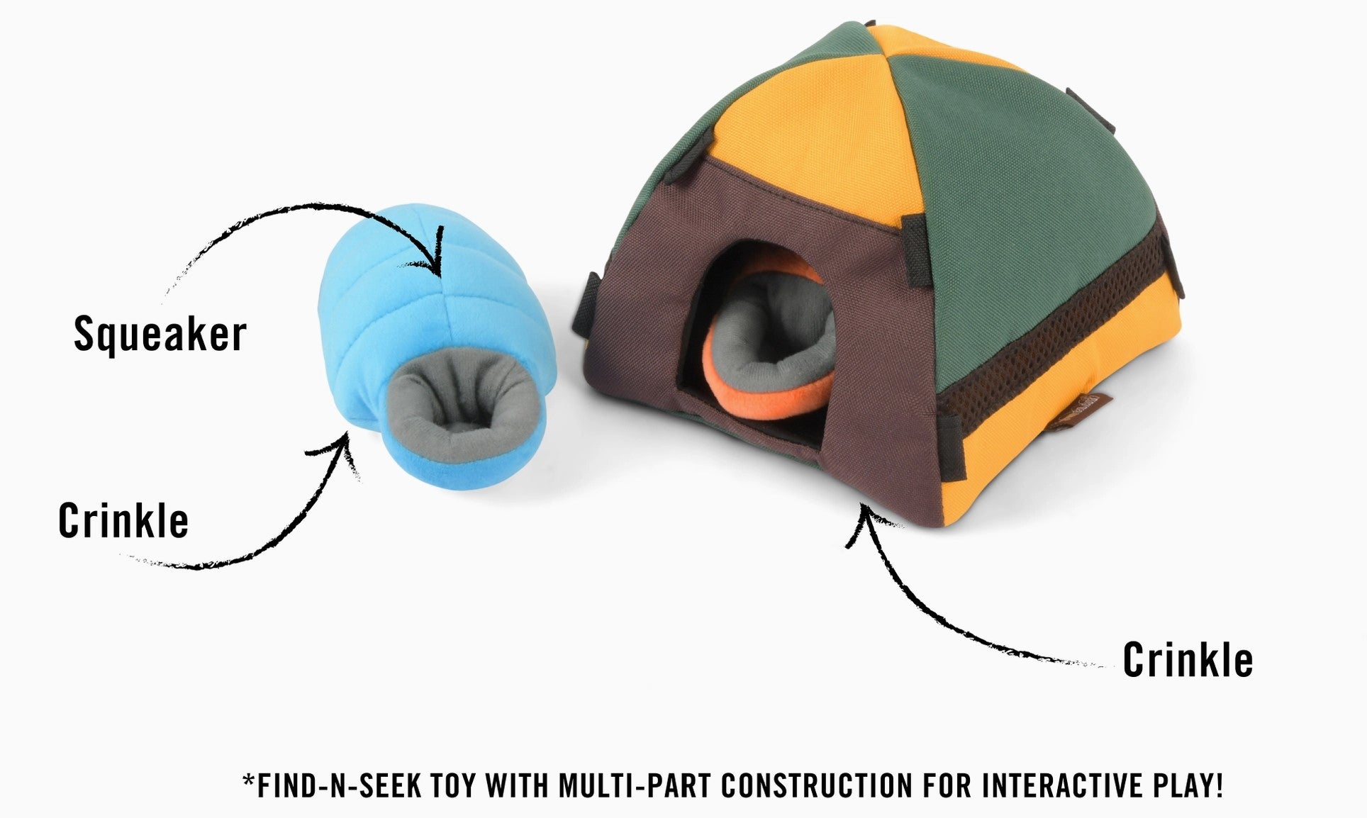 Embark on a pawsome adventure with P.L.A.Y.’s Camp Corbin Trailblazing Tent toy. Your furry explorer will love rummaging through the tent to find-n-seek out the two cozy sleeping bags with crinkles and squeakers for extra fun. For an added challenge, hide treats inside the tent and watch your pup blaze trails to tasty rewards.