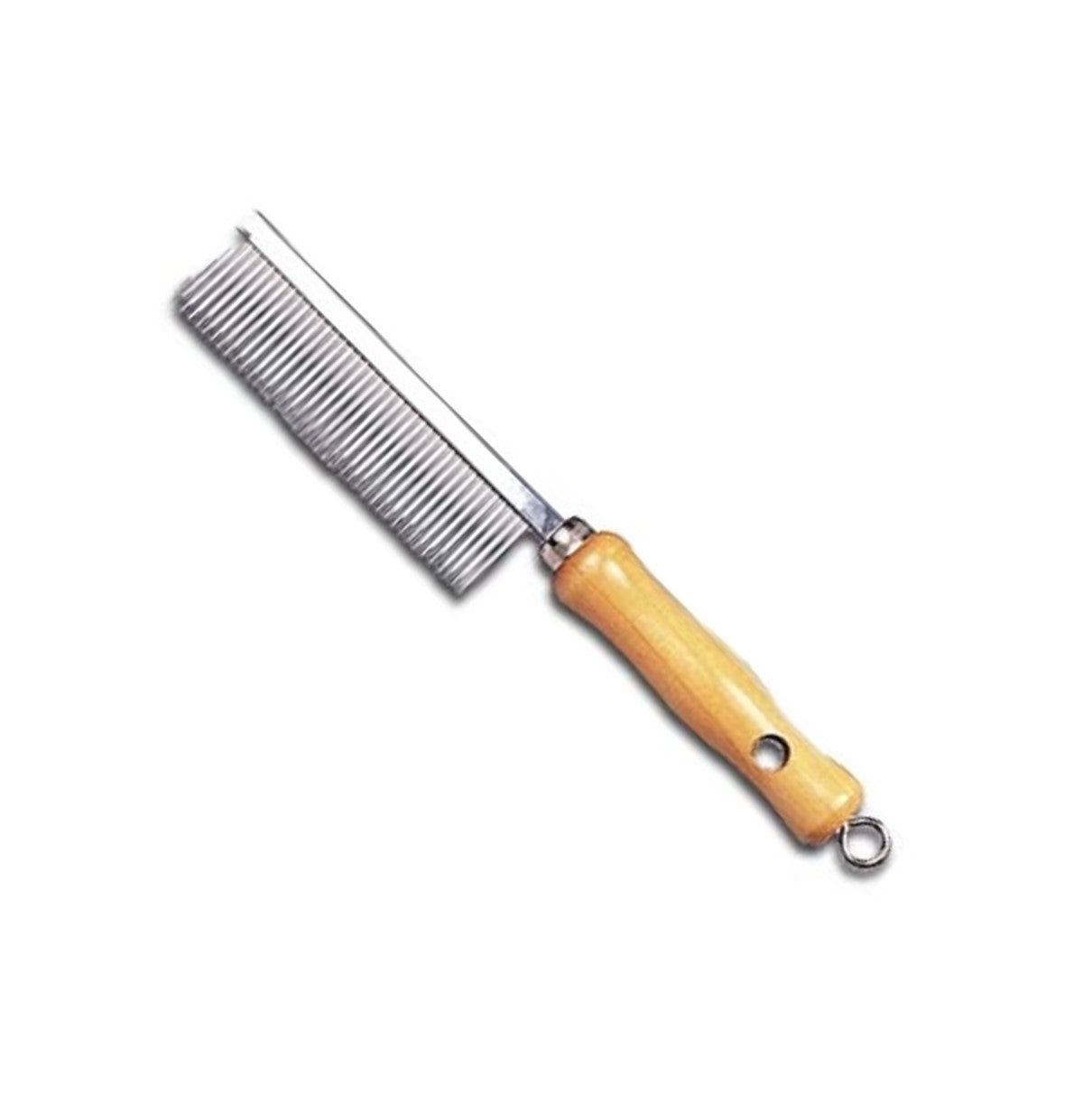 Provides comfort for the animal while removing dirt from the coat. Wooden handle. 40 teeth.