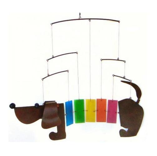 Handcrafted metal and glass hanging mobile.
