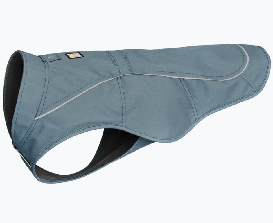 The Overcoat is the classic cold-weather utility jacket, built with sturdy, burly materials to keep up with even the most active dog diving through brush and brambles. The wind- and water-resistant outer fabric sheds light moisture, while the interior recycled polyester fleece lining adds cozy warmth. Side-release buckles on both sides provide easy on/off, and a leash portal allows the Overcoat to be worn over all Ruffwear harnesses (and most other harnesses).